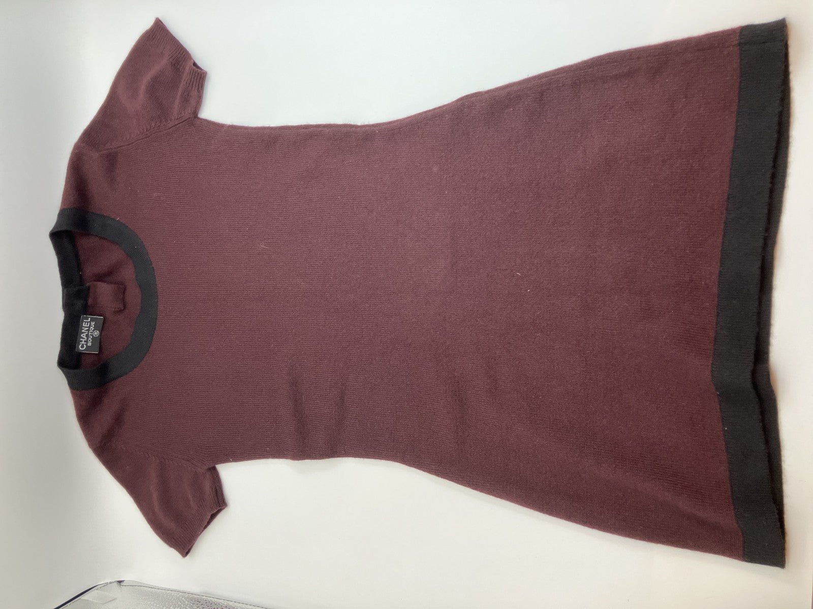 CHANEL Cashmere Knit Dress Burgundy テ・Black
