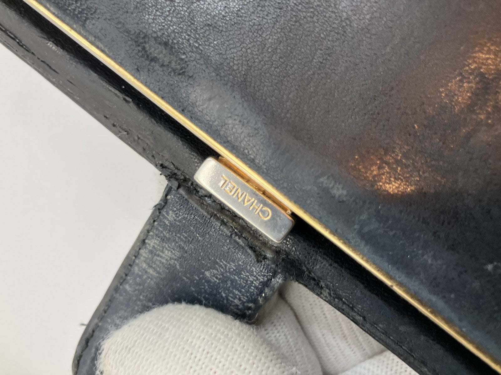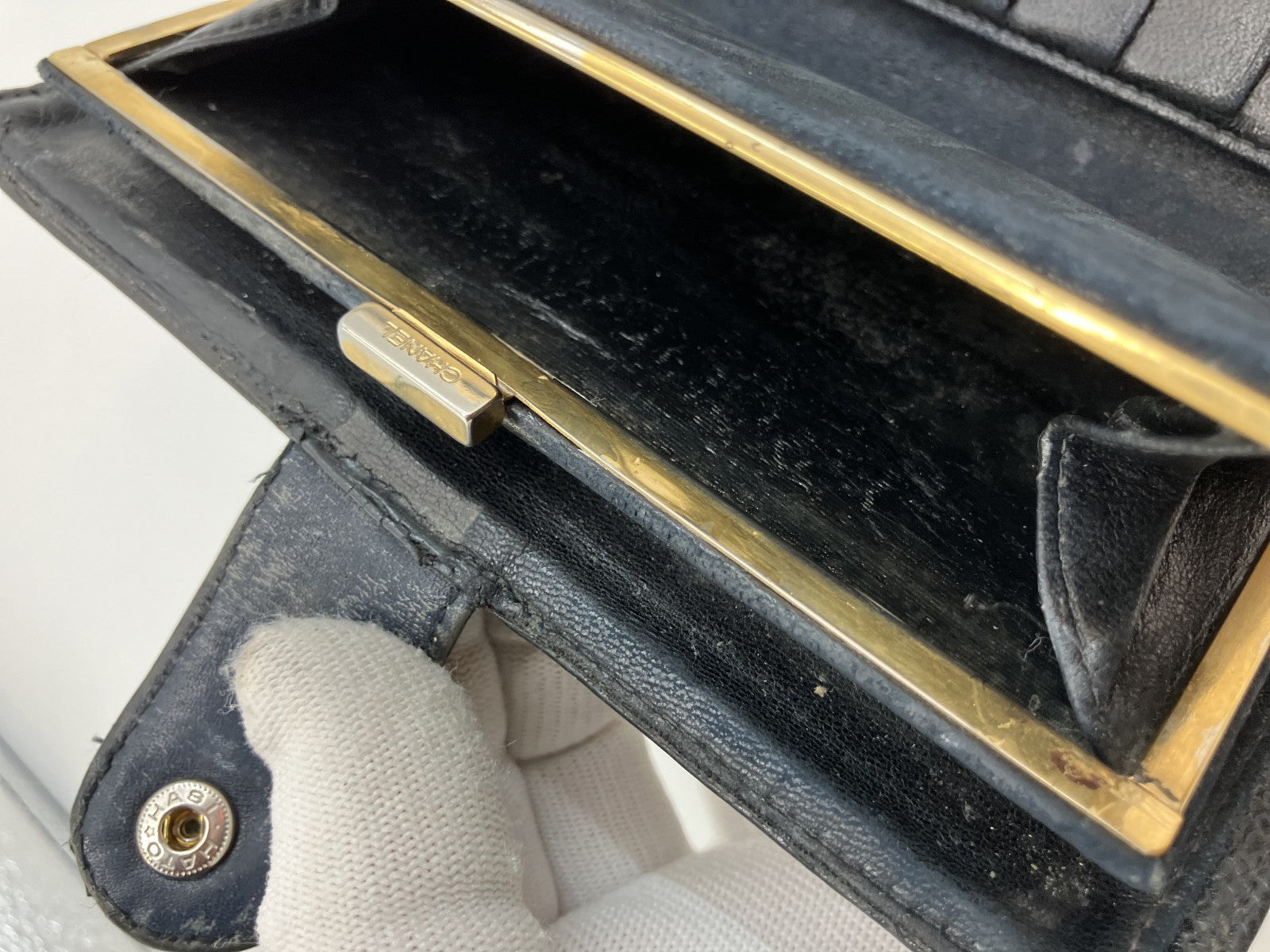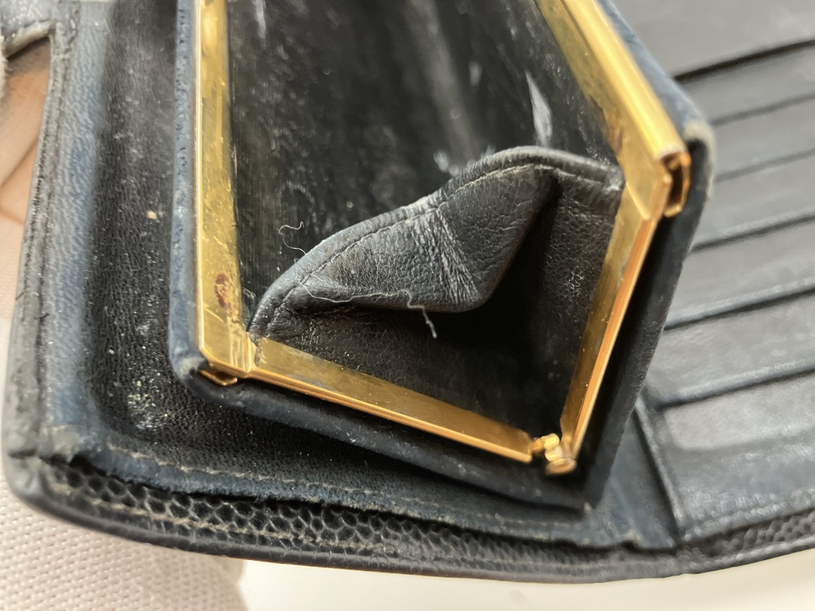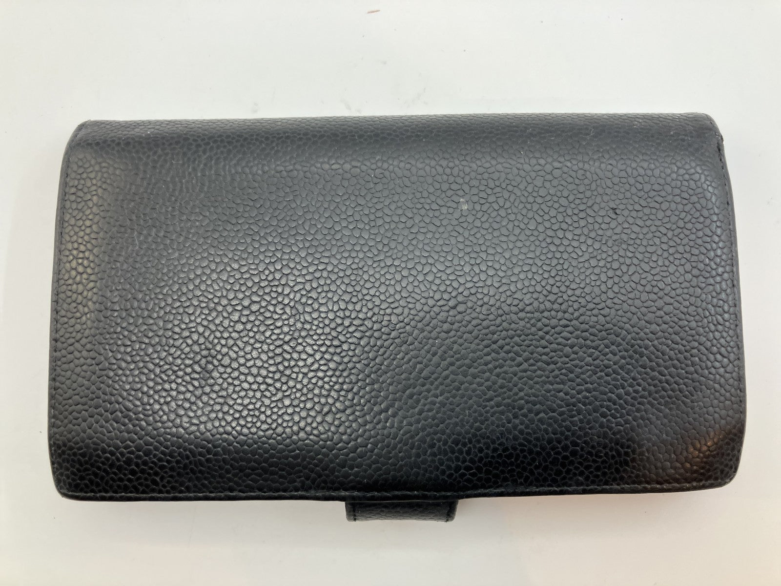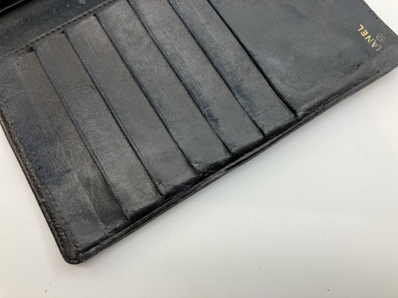 CHANEL Black Caviar Bifold Wallet with Kiss-Lock Coin Purse | 6-Series Vintage (17.5 テ・10 cm)
