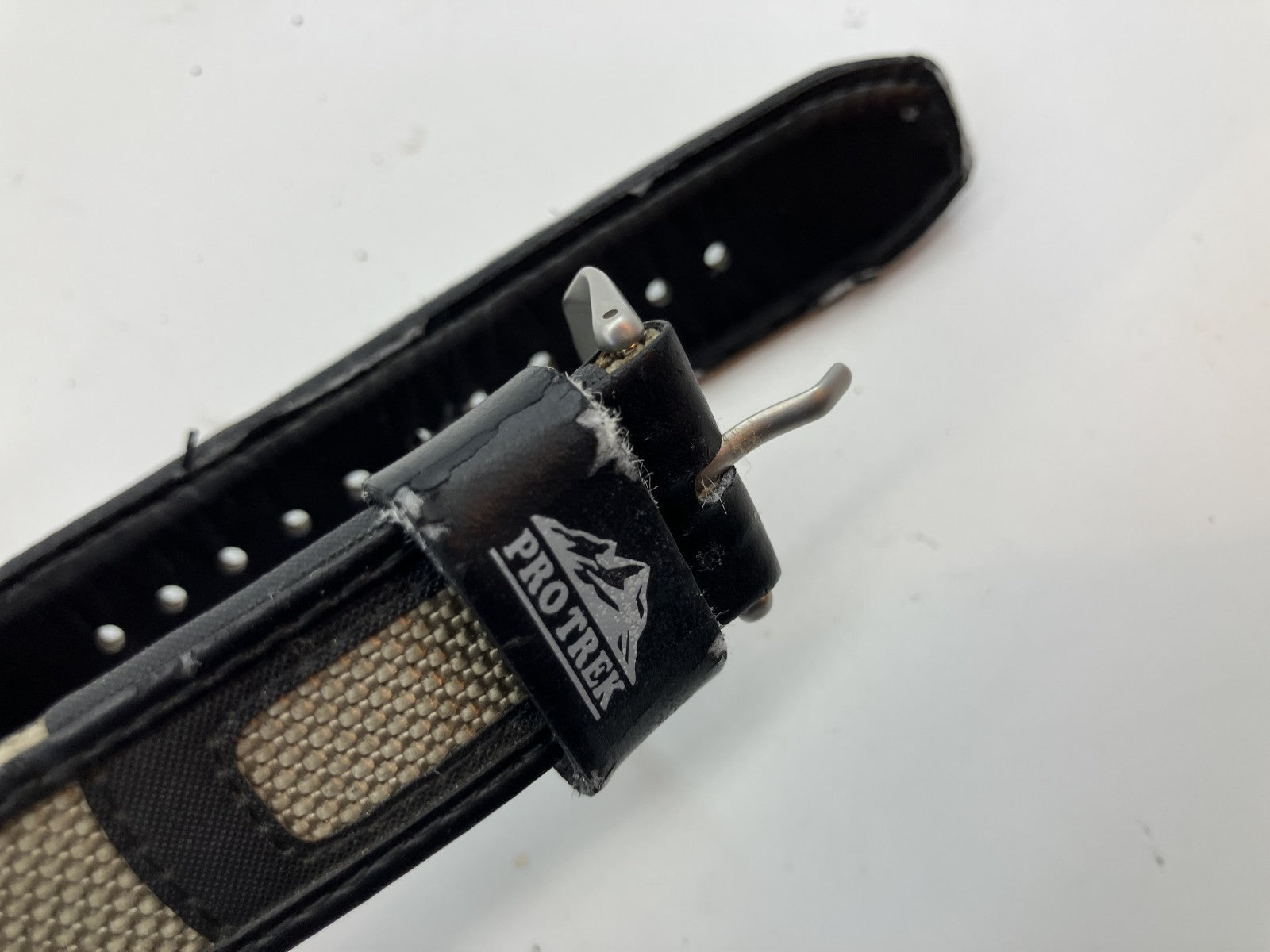 Battery replaced. All buttons and backlight function properly. Minor scratches and scuffs. Band shows deterioration (see photos), but the watch remains fully functional. |