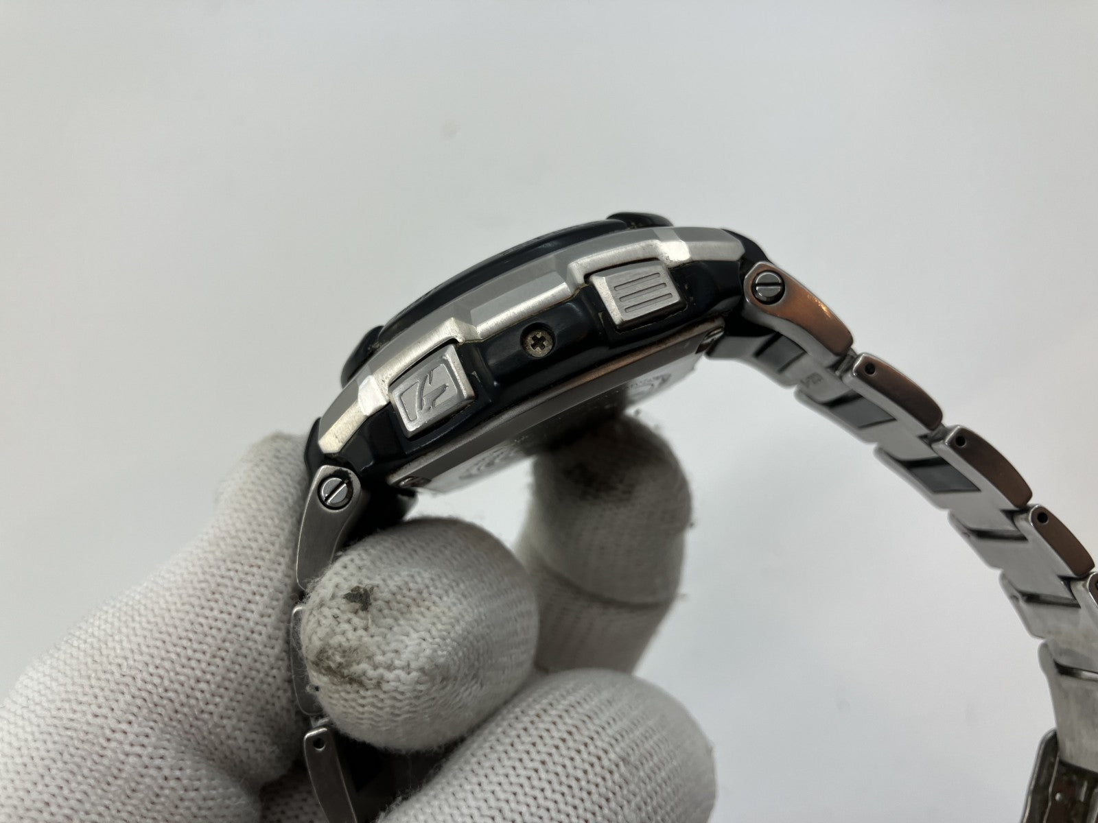This CASIO G-SHOCK MTG-1000G offers both rugged functionality and Japanese precision. The watch features a 47mm case, a combination of stainless steel and resin construction, and fits wrists up to 17cm. Despite signs of use such as minor scratches and slight resin imperfections, the watch remains fully operational and visually appealing. Crystal glass is clear with no visible cracks. Ideal for collectors or everyday wear. Please refer to photos. Important Notes: