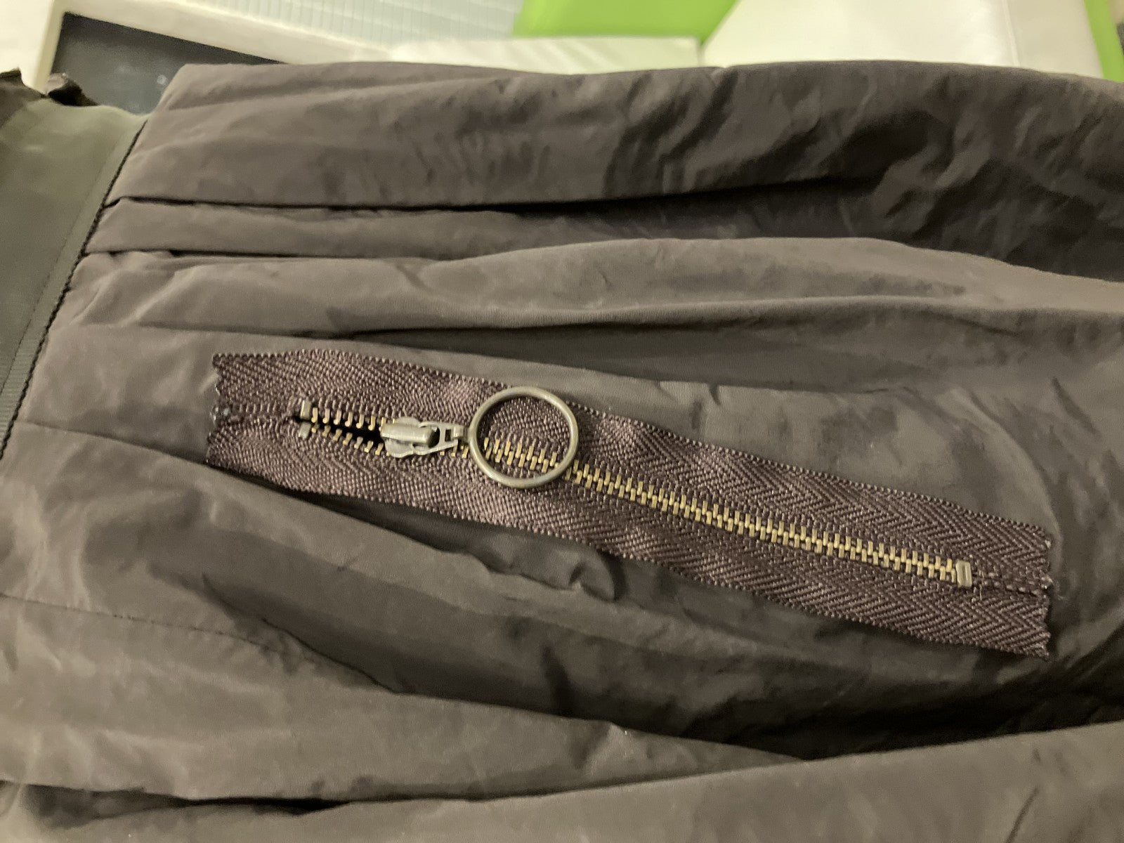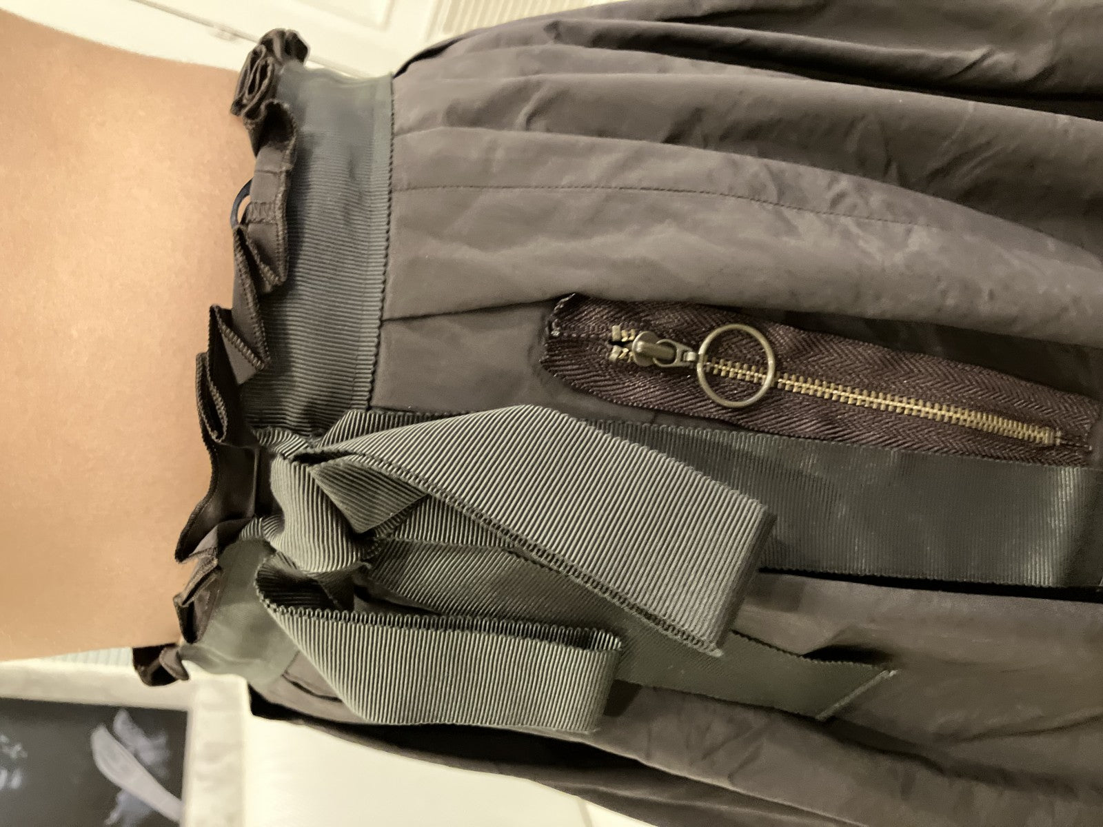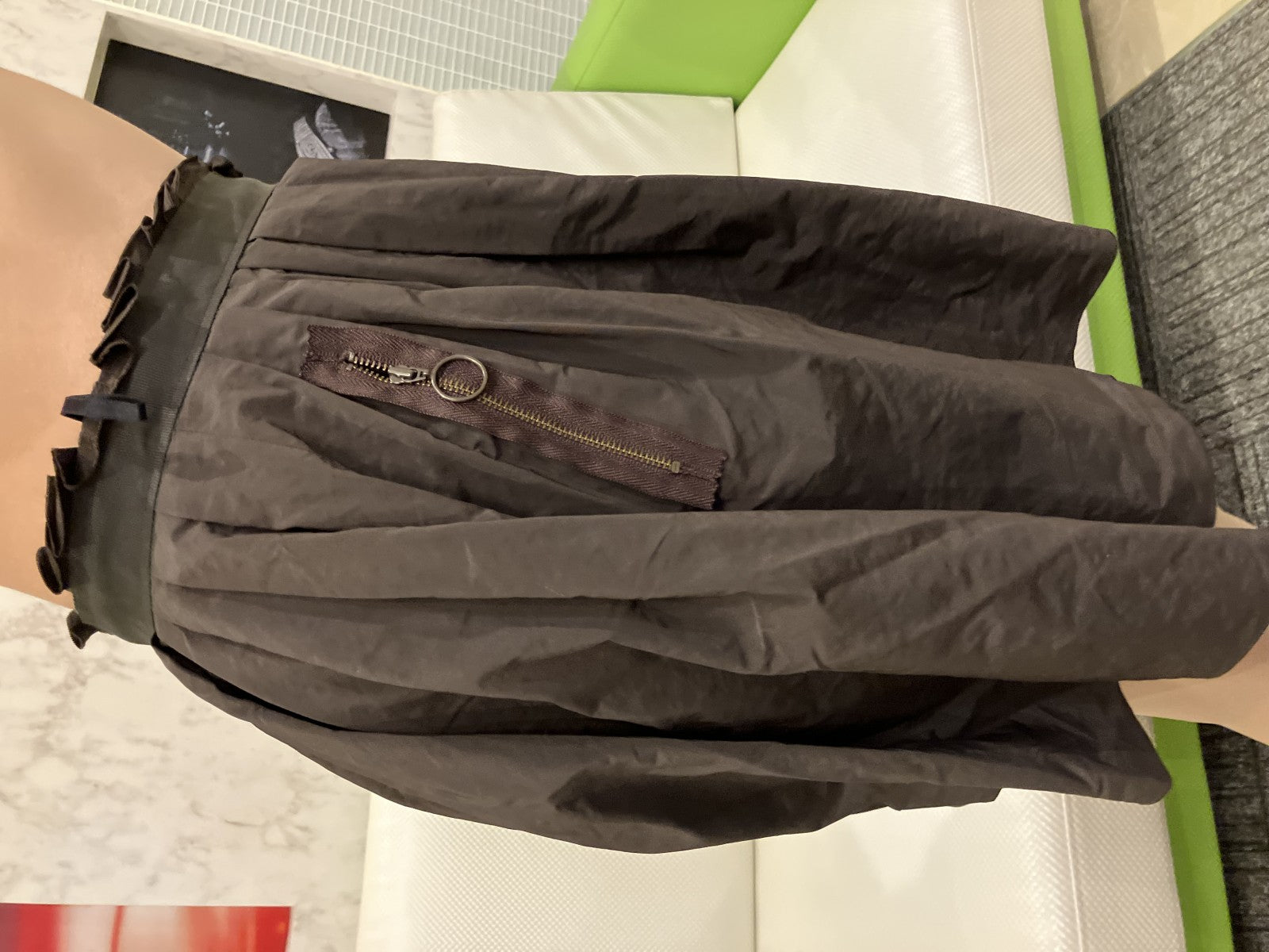 LANVIN en Bleu Skirt Khaki Ruffled waist x ring zip design Size 38