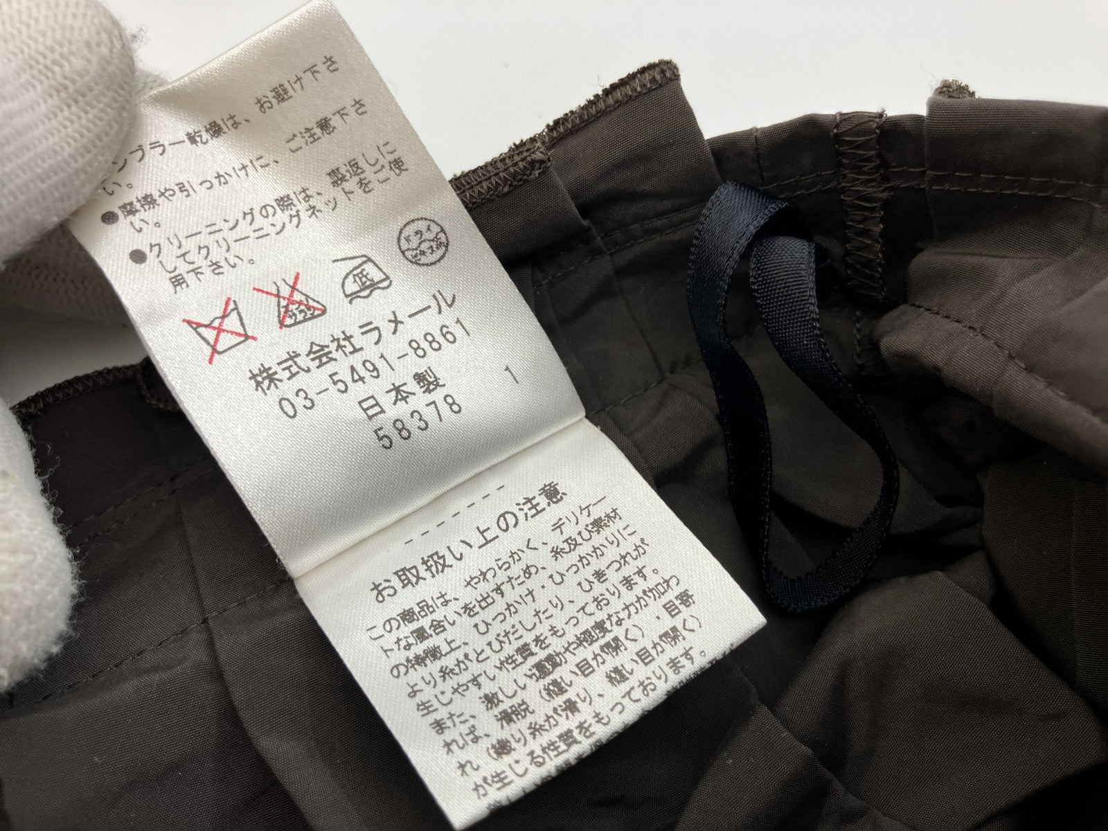 | Production features | This is a feminine and unique design skirt from LANVIN en Bleu. The shiny khaki fabric and the attention to detail, such as the ruffled waist, grosgrain ribbon, and zipper with ring, are impressive. The unique placement of the zipper and ribbon from the side to the back creates a beautiful silhouette from any angle. The A-line that doesn't flare out too much gives a mature and cute impression. [Brand introduction] LANVIN en Bleu is a popular brand that is being sold in Japan as the second line of the long-established French brand LANVIN. With the theme of "CHIC et GAVROCHE," the brand offers a style that mixes classic elegance with a playful twist. [Material] Outer material: 83% polyester, 17% nylon Tape part: 100% polyester イ蟆スizeイ サbr> Size: 38 (equivalent to size M) Waist when laid flat: around 13" Total length: around 19.3" (see image with measuring tape) [Model information] Height 61.8" / Bust 95-39.4" / Waist 25.6" / Hips 35.4" / Inseam 27.6" The model is wearing it high-waisted. It is above the knee length and gives a soft impression. イ闃ッonditionイ サbr> There are wrinkles, rubbed areas, and small fraying. There is a slight feeling of use due to storage and wear, but there are no noticeable scratches or stains, and it is still fully usable. *Please check the image for details. [Other notes] -The color of the actual product may differ from the image. - Please understand the characteristics of used items before purchasing. 郢晢スサIf the product description is significantly different, we will respond in good faith. 郢晢スサIf you have any questions, please feel free to contact us. [About shipping and transactions] -. If customs duties are incurred, the buyer will be responsible for paying them. 郢晢スサMultilingual support is also available. Please feel free to contact us. 郢晢スサSecondhand dealer license number: No. 431360059517 (Saitama Prefectural Public Safety Commission) 郢晢スサThis product is 100% authentic (inspected) and purchased from a major domestic auction dealer. |