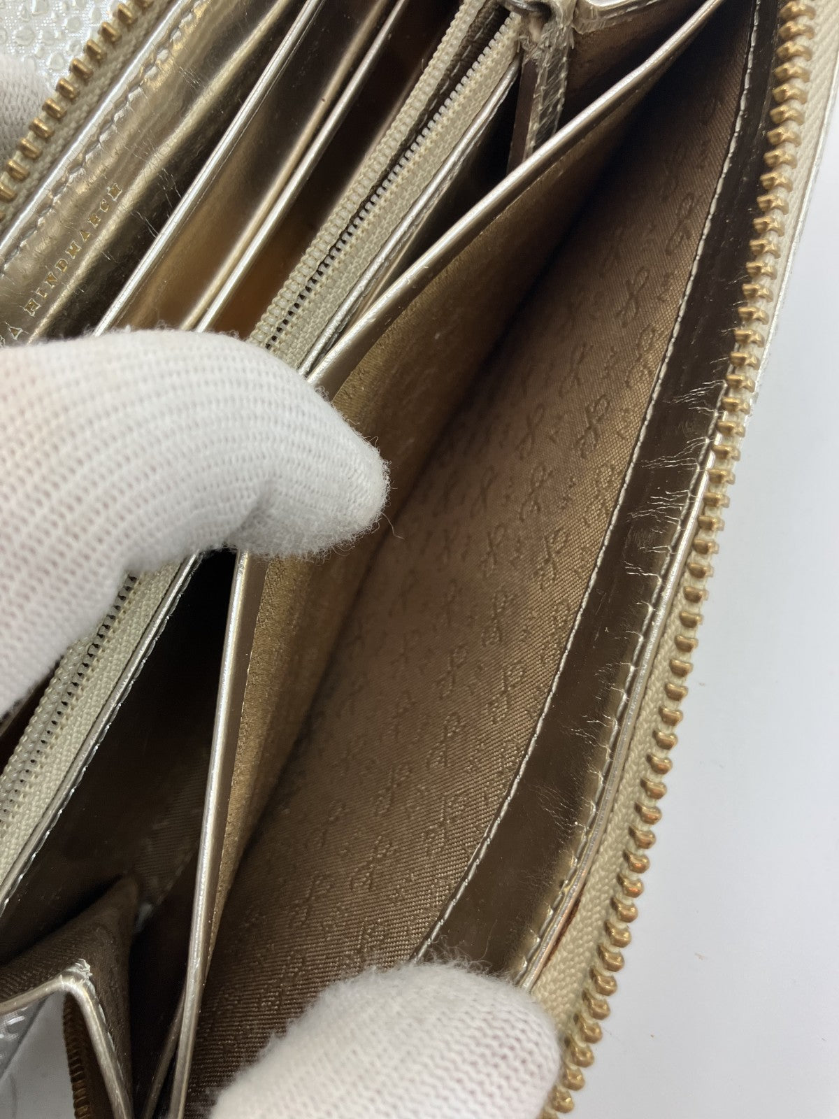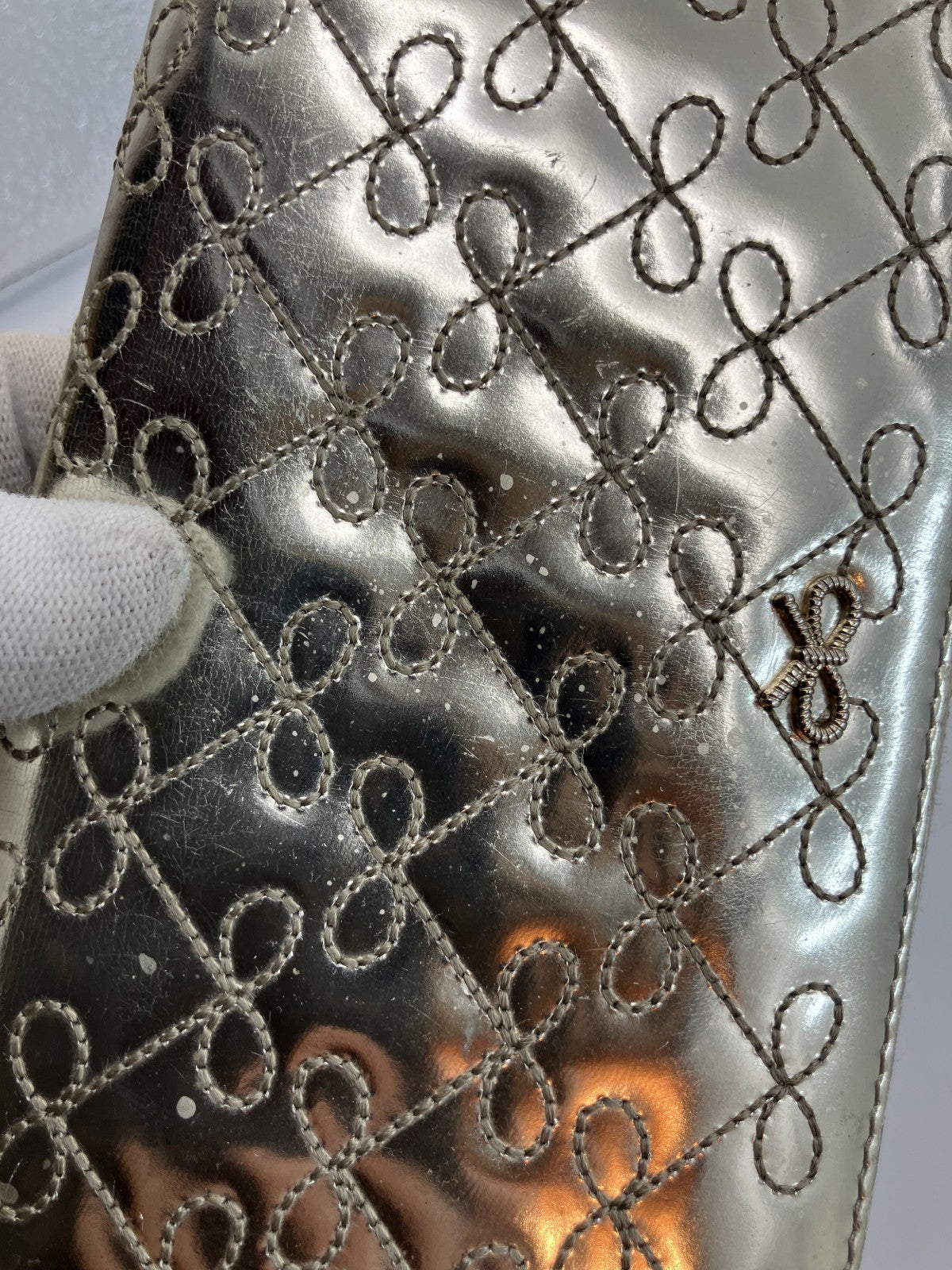 Anya Hindmarch Bow Quilted Zip Around Long Wallet Metallic Gold Patent Leather