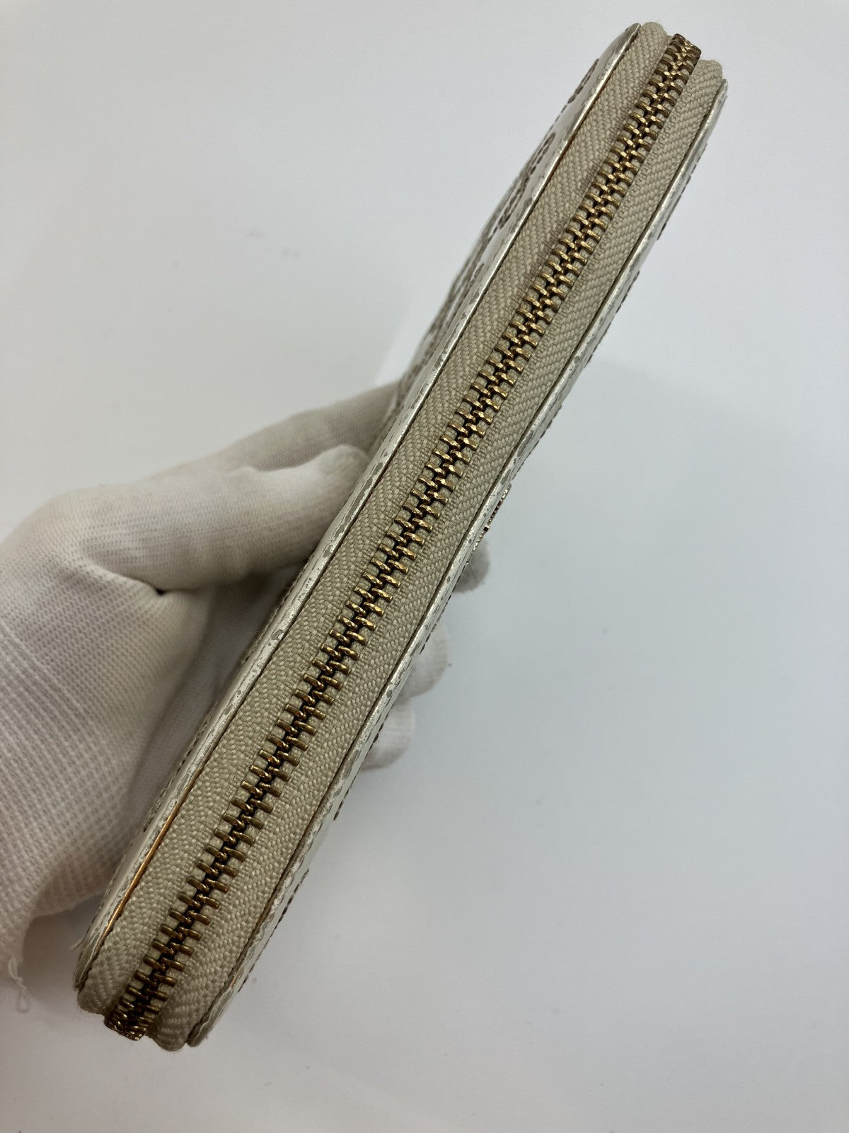 | Condition Details | Pre-owned with noticeable wear. Small scratches and scuffs overall, tiny speck stains (notably near the logo), edge paint peeling, fine patent micro-cracks/creases, hardware scratches and dullness, and some discoloration on the zipper tape. Zipper runs smoothly and the wallet is fully functional. Please check all photos. |
