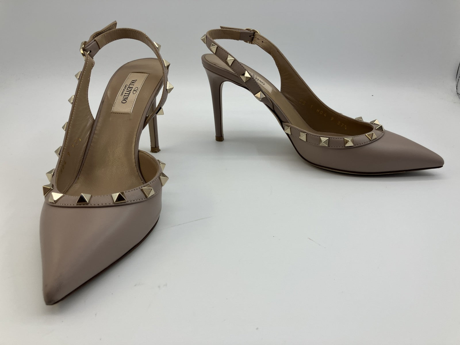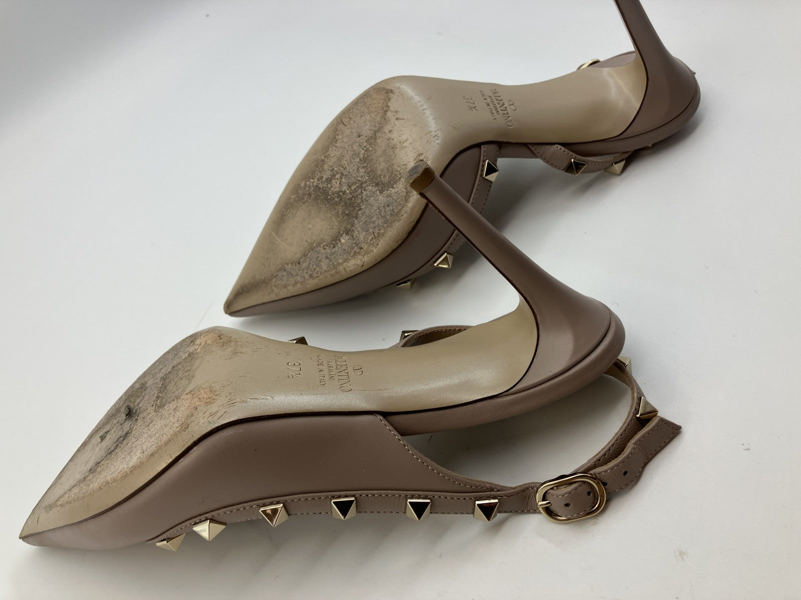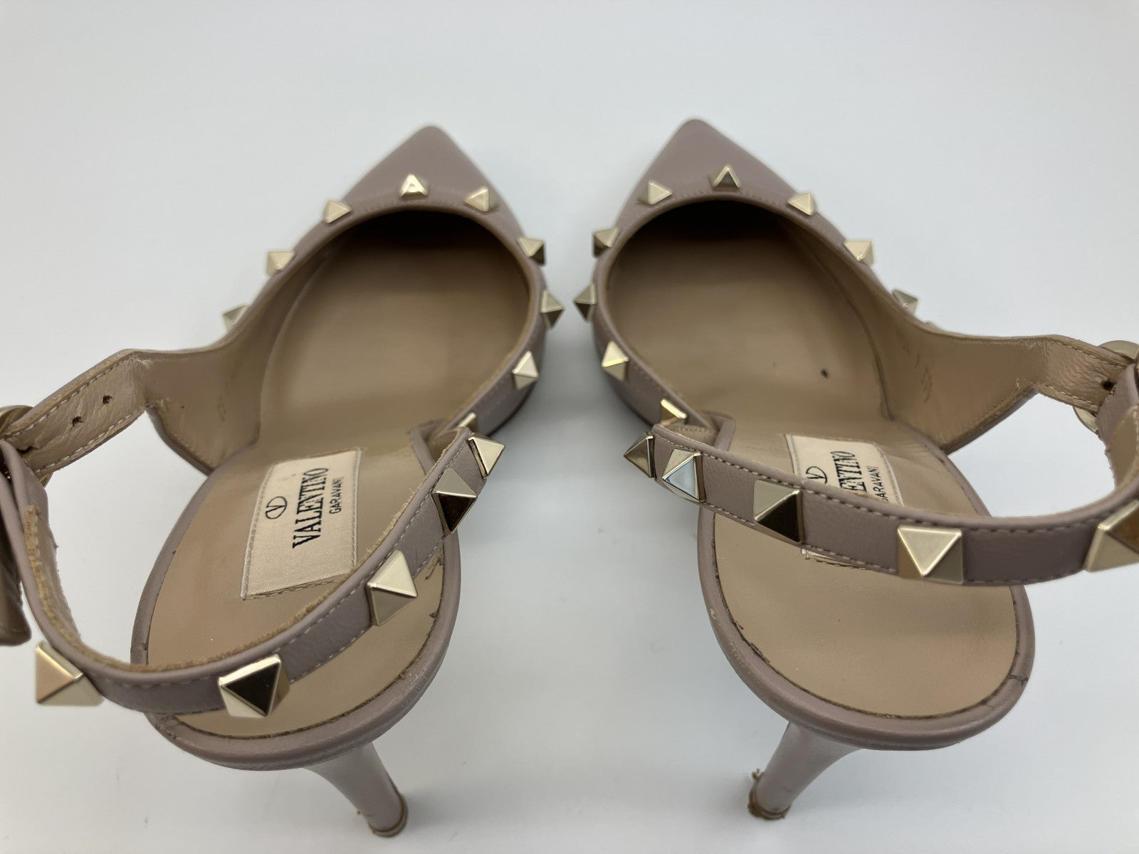 Valentino Garavani Rockstud leather slingback pumps, nude beige, size 37.5, made in Italy, 3.5" heel.