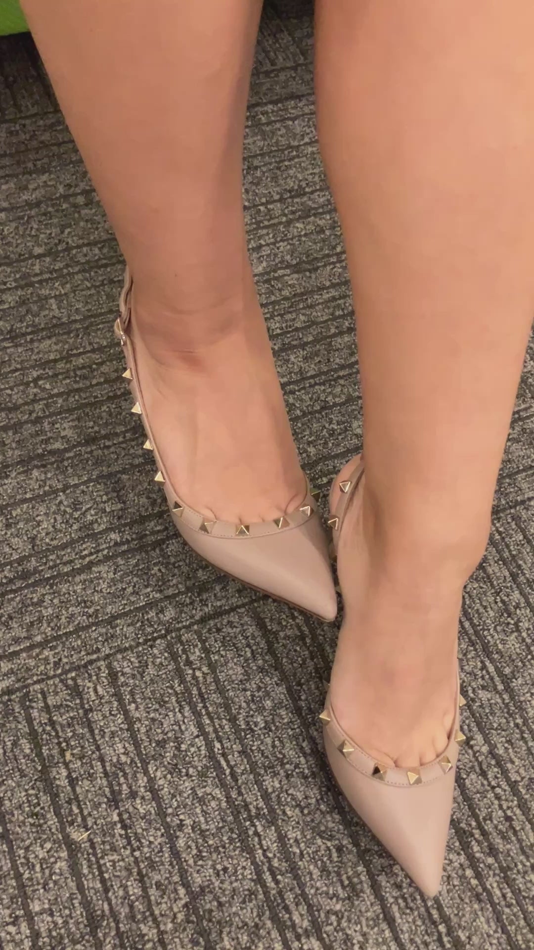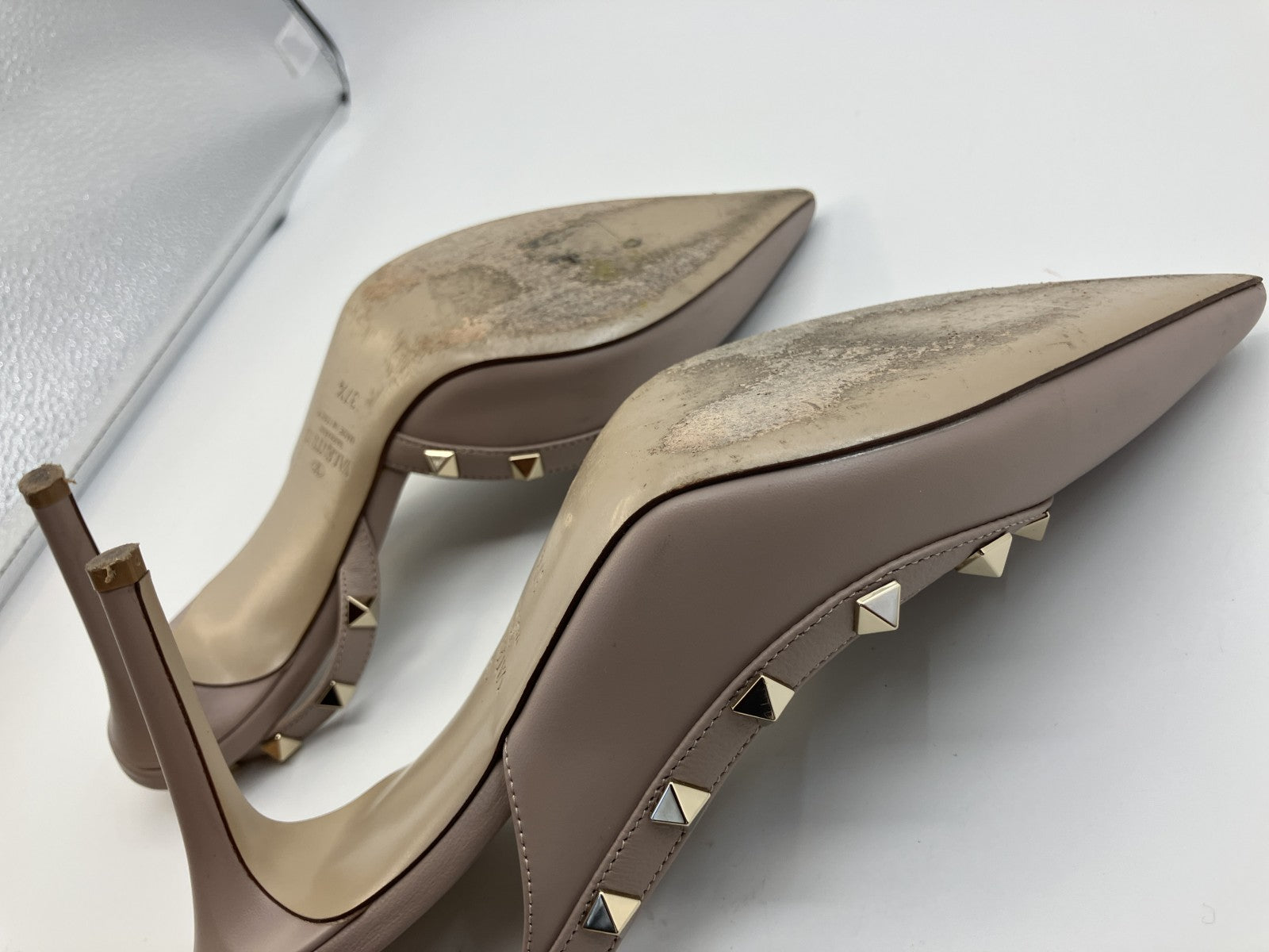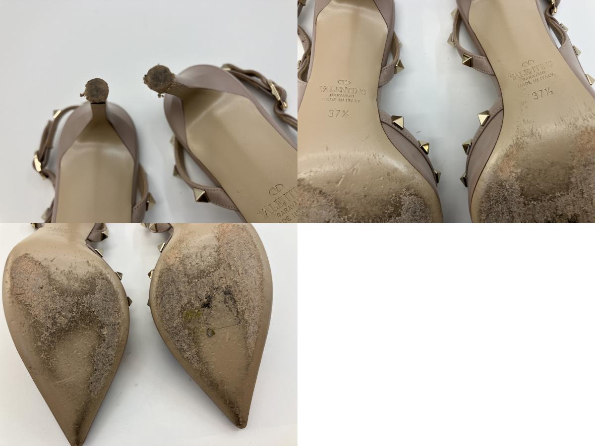 Valentino Garavani Rockstud leather slingback pumps, nude beige, size 37.5, made in Italy, 3.5" heel.