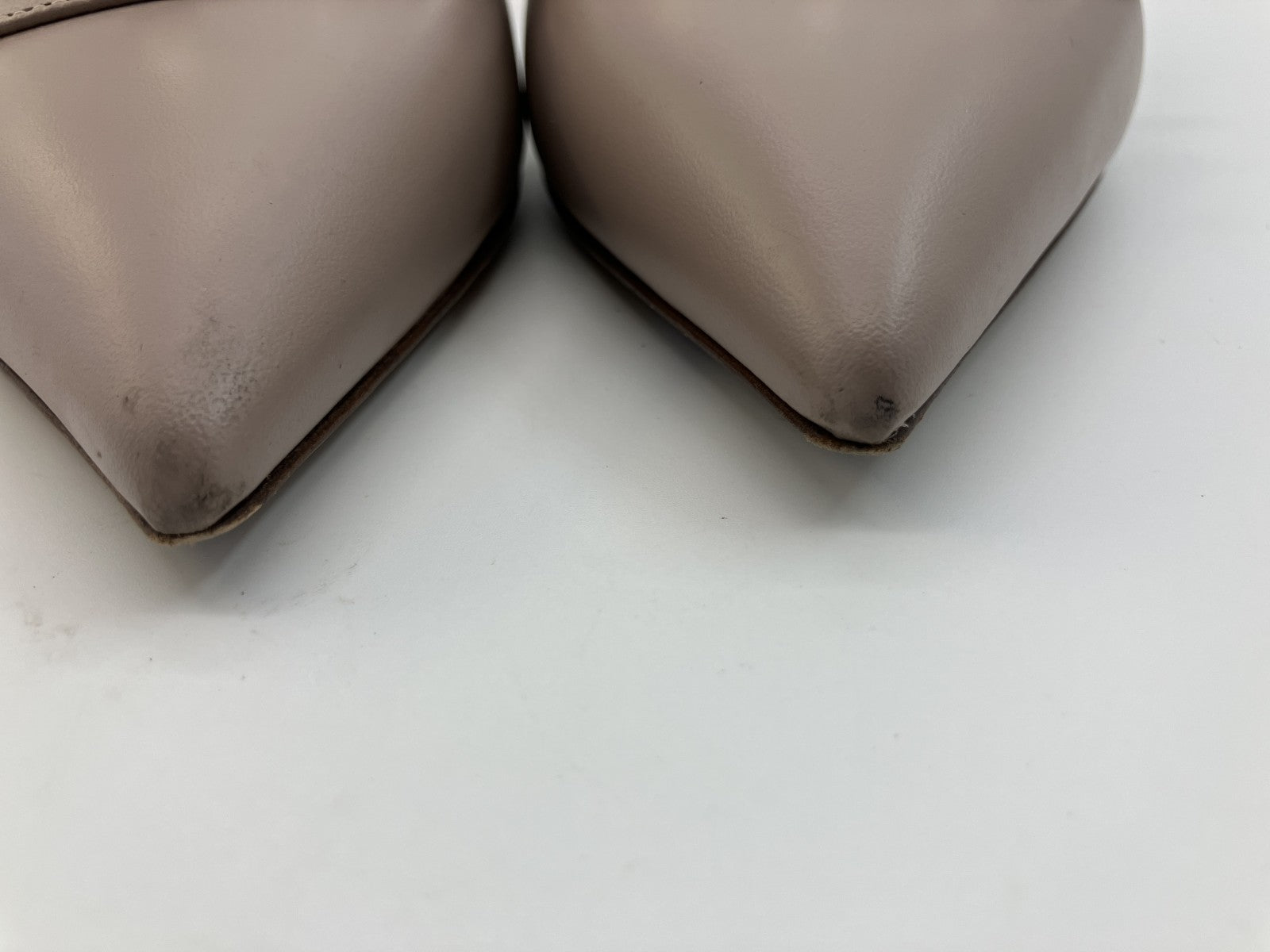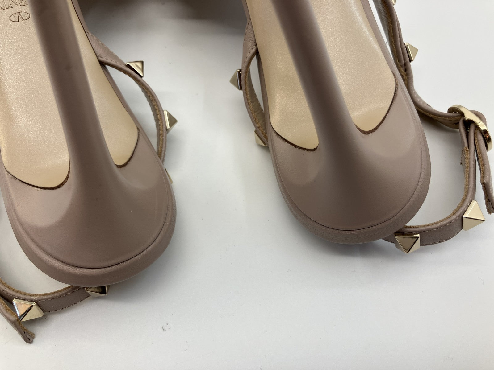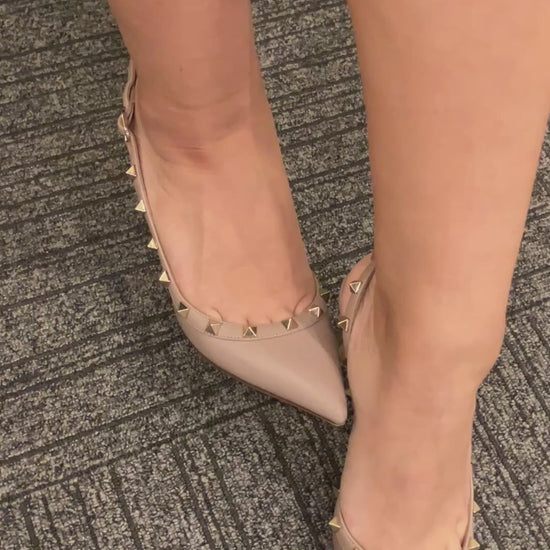VALENTINO GARAVANI Rockstud Leather Slingback Pumps Nude Beige EU 37.5 Made in Italy Heel 9cm