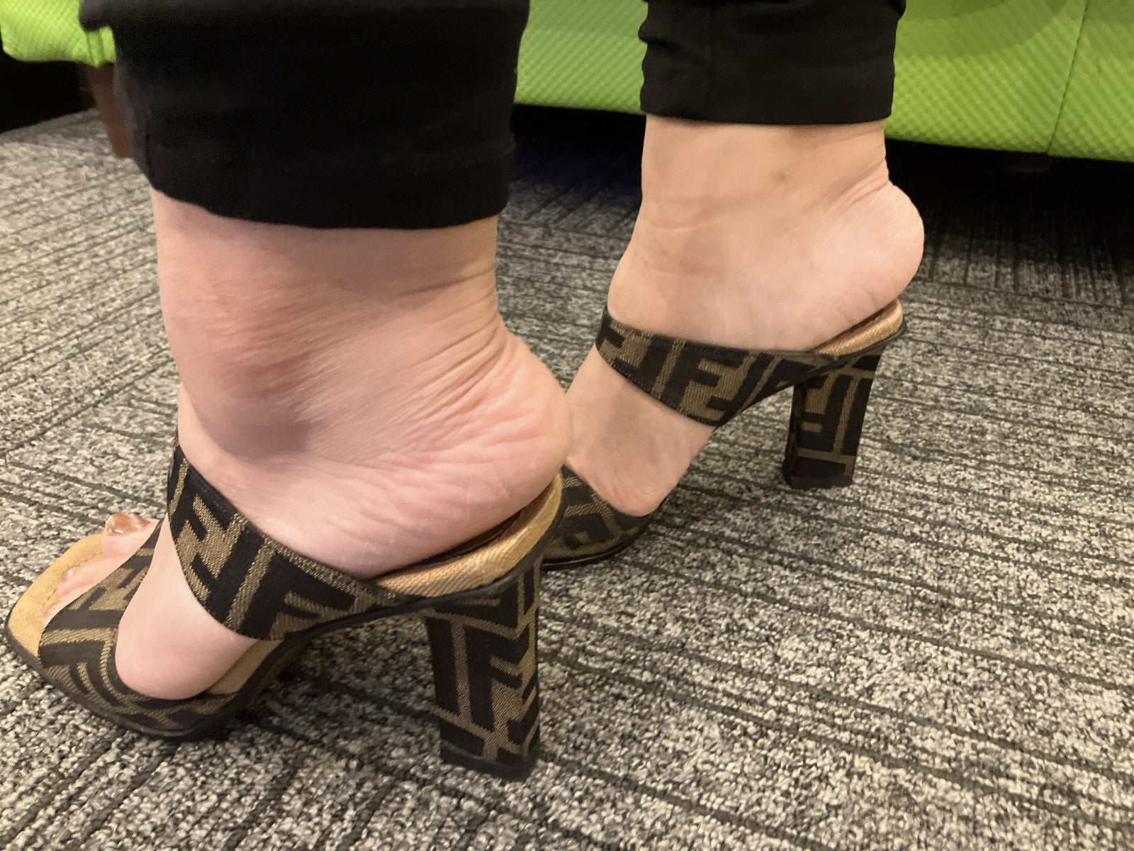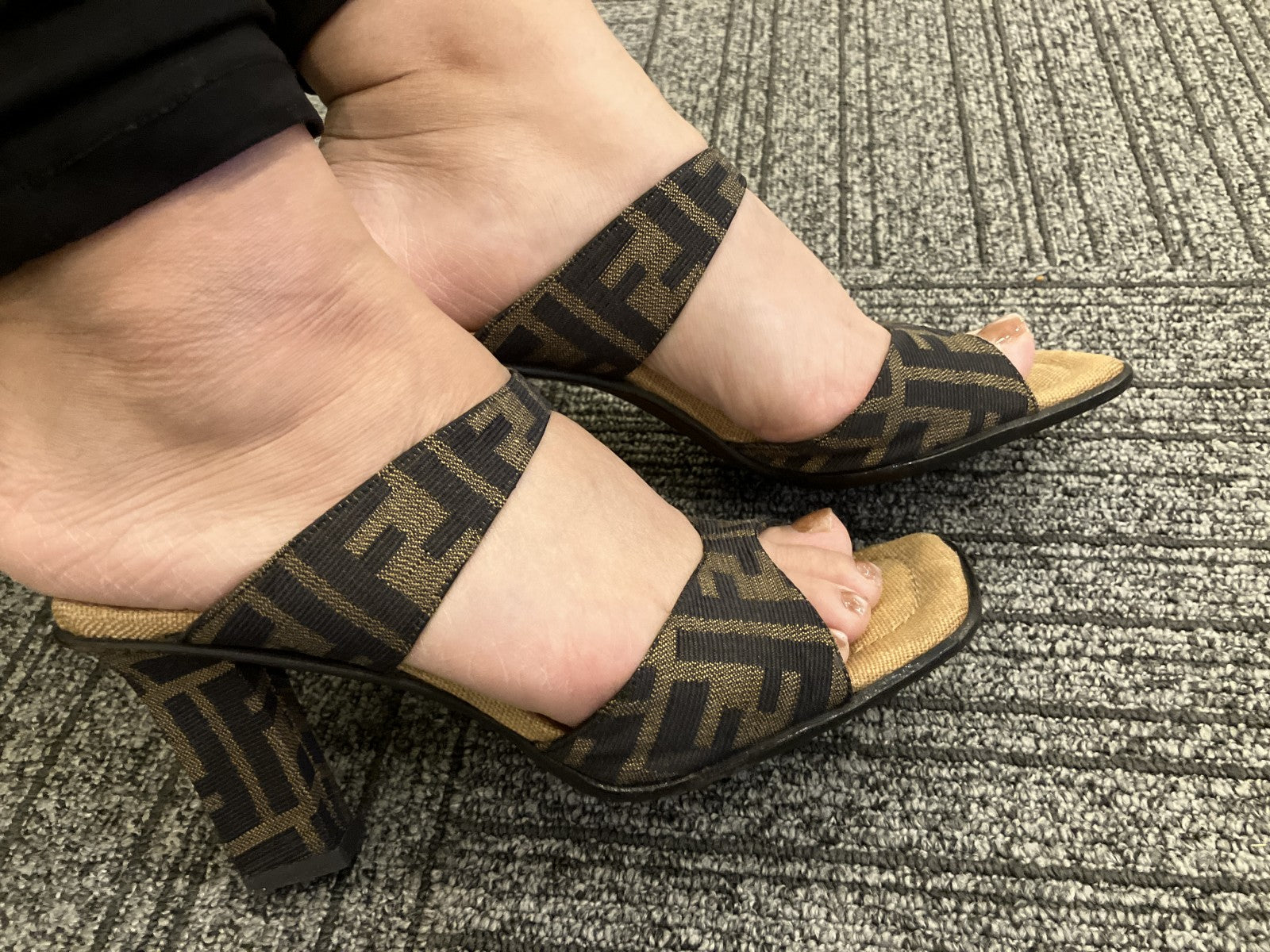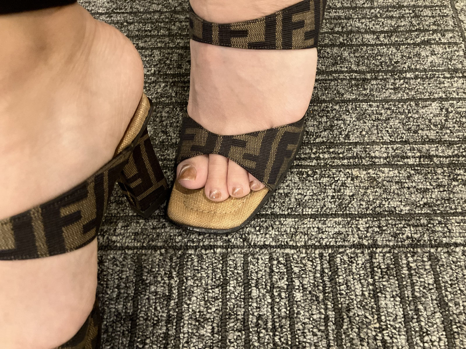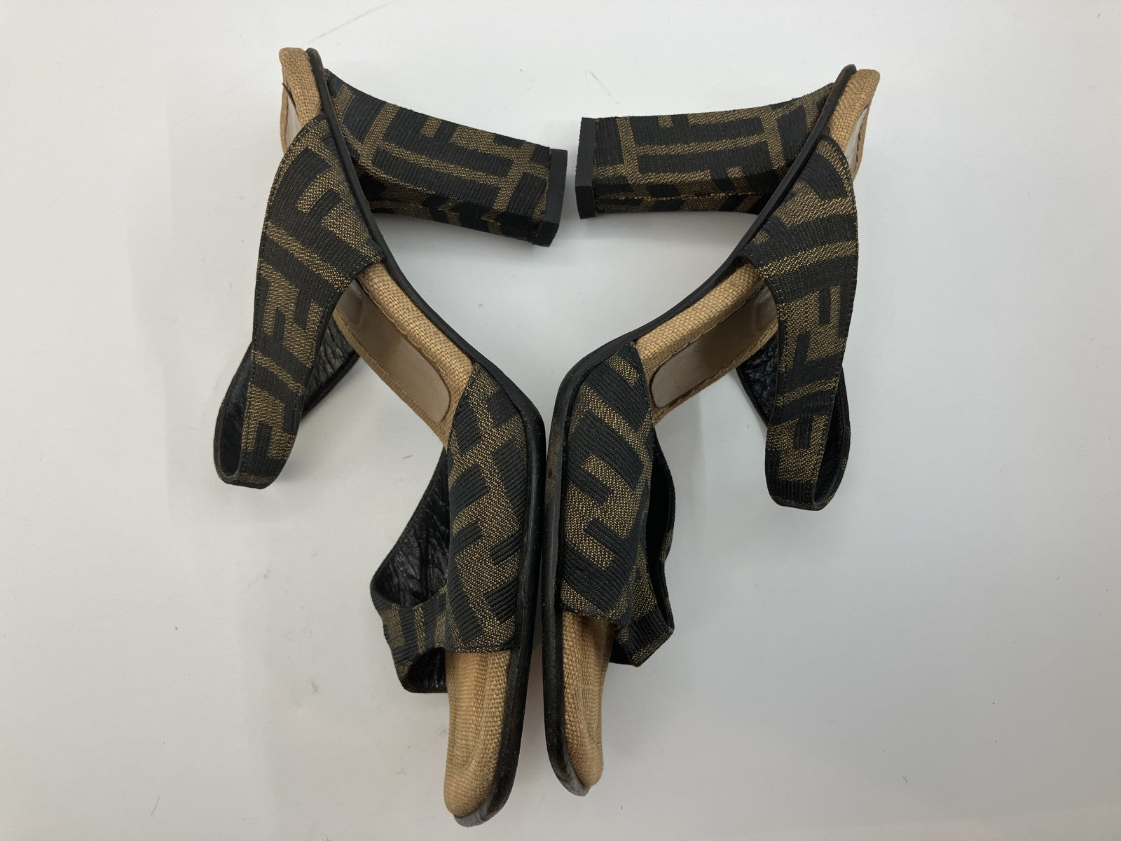 FENDI Zucca Pattern Sandals, Block Heel, 3.5" (EU37), Heel Repair Required