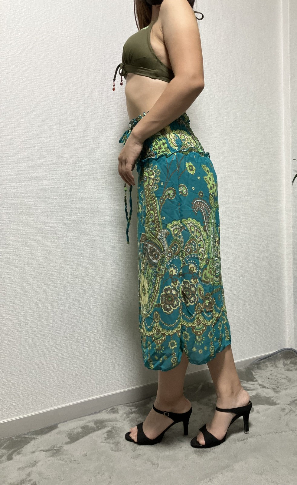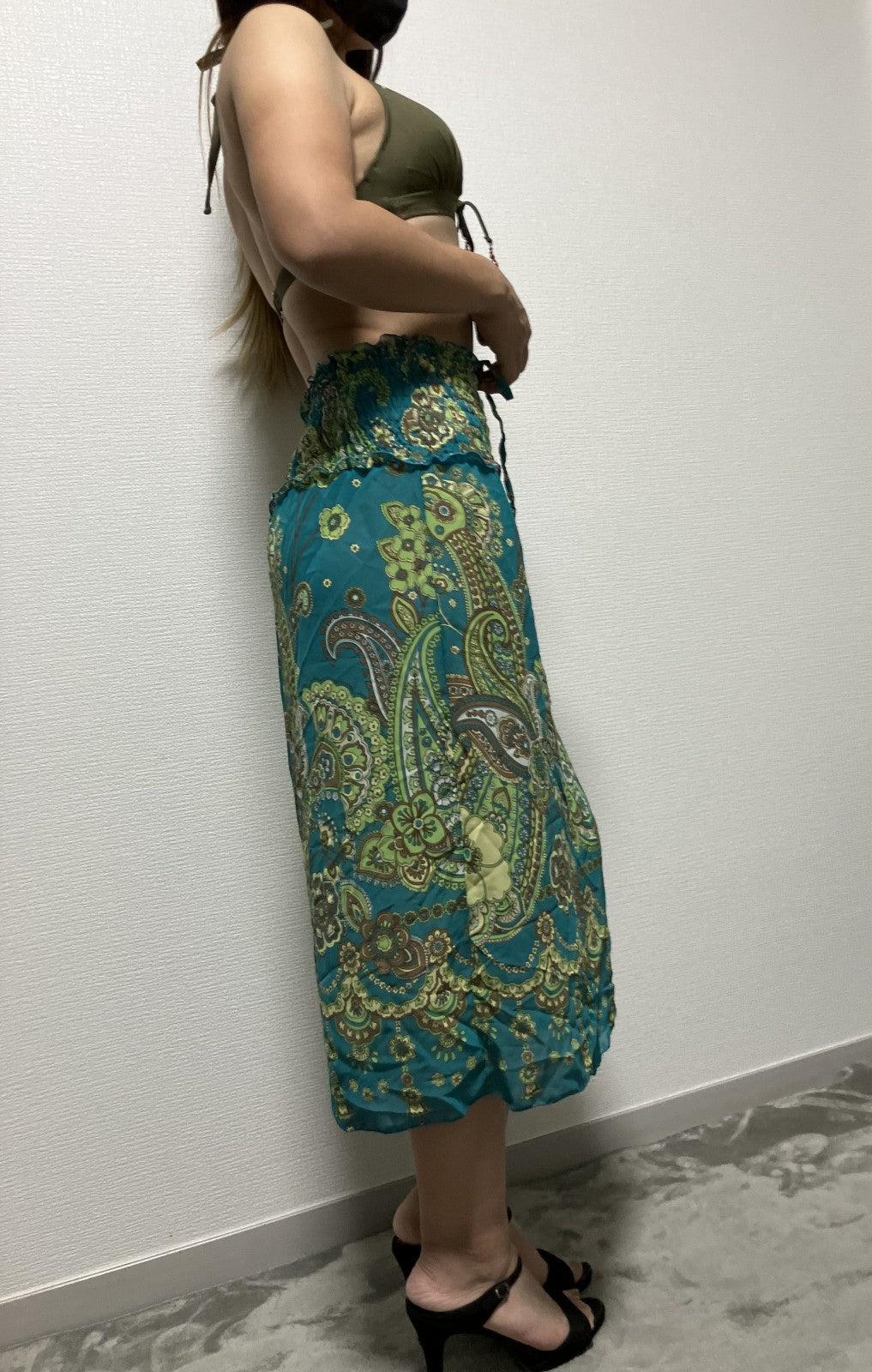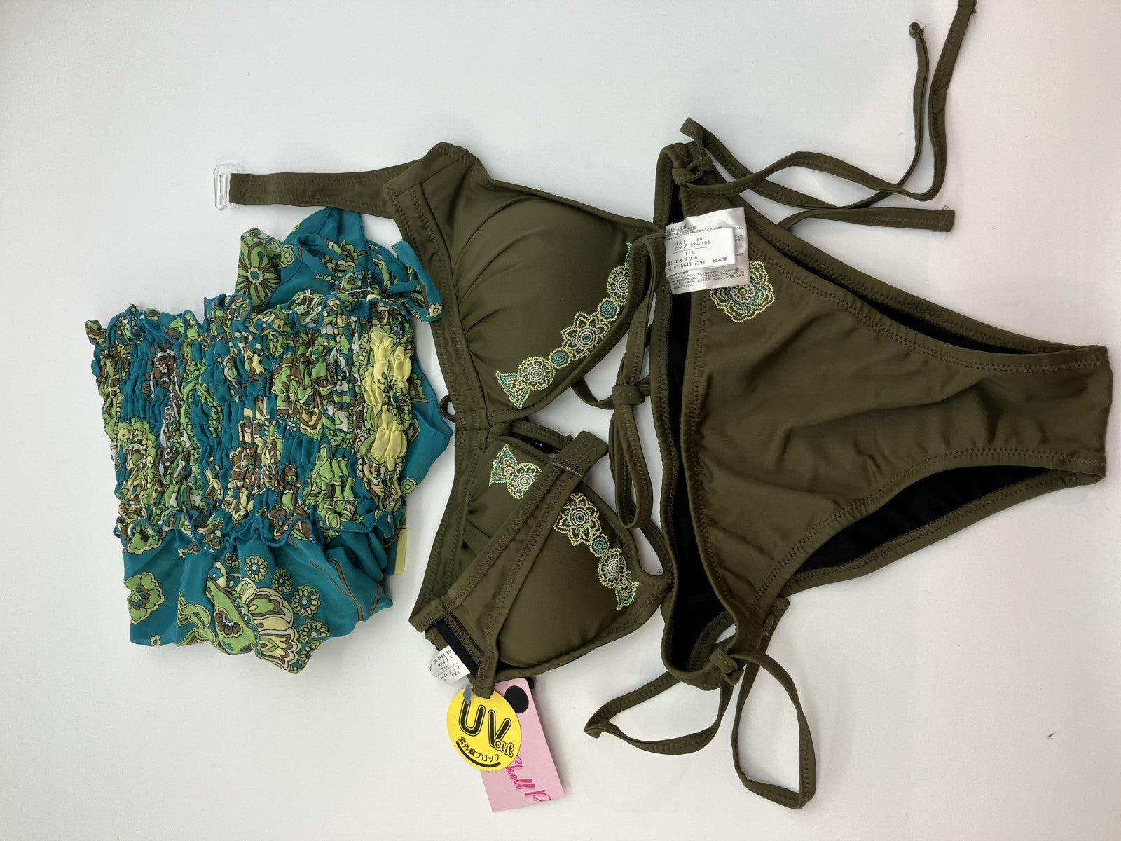 New swimsuit + skirt Green bikini - Size 11 (bust 86cm/hips 92-100cm) Skirt: waist 26cm/max 38cm Length 87cm