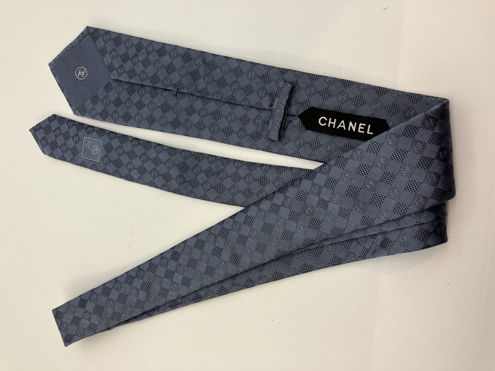 Chanel Coco Mark 20P Necktie Width 8 cm (3.15 inch) Silk Blue