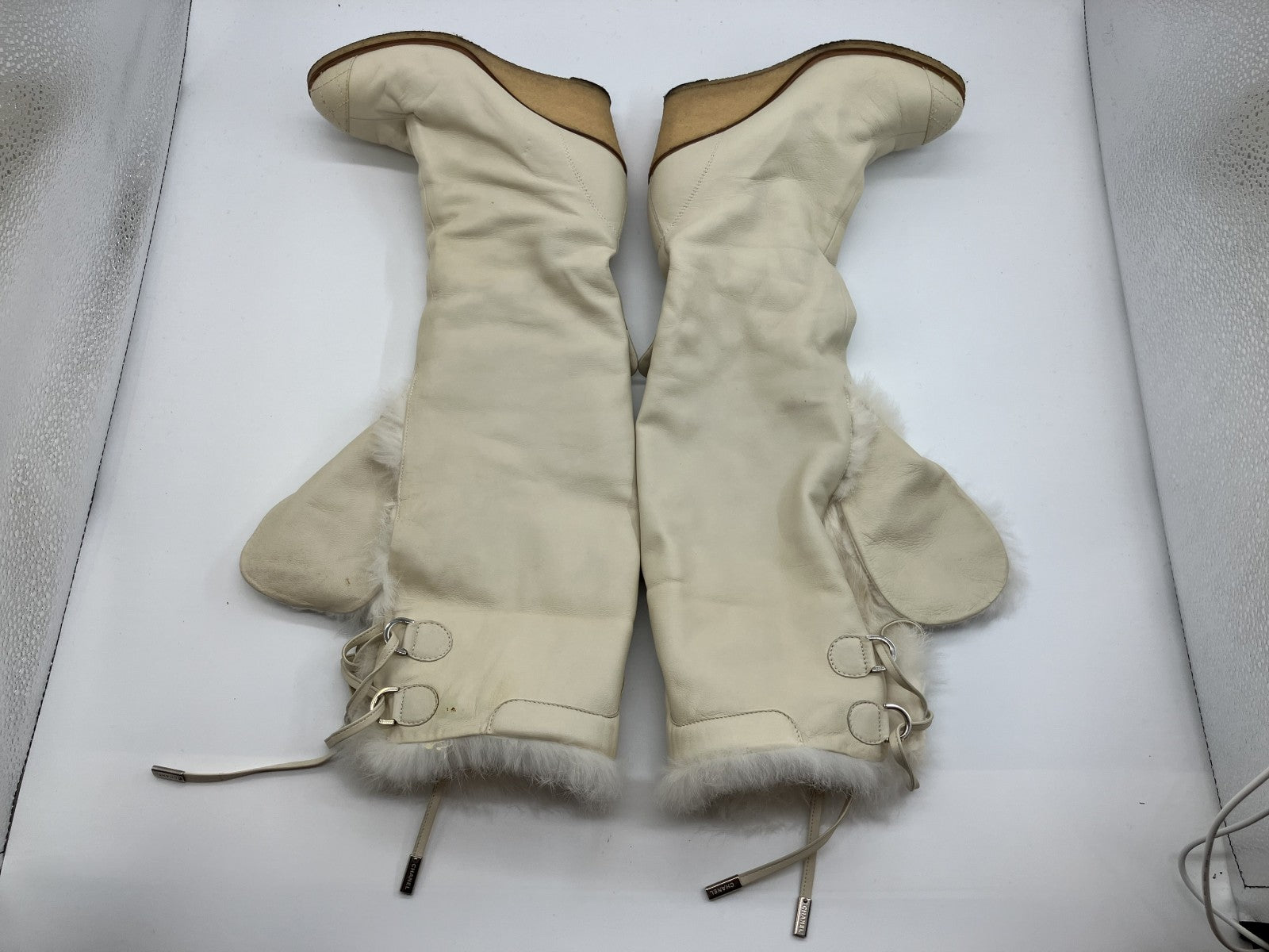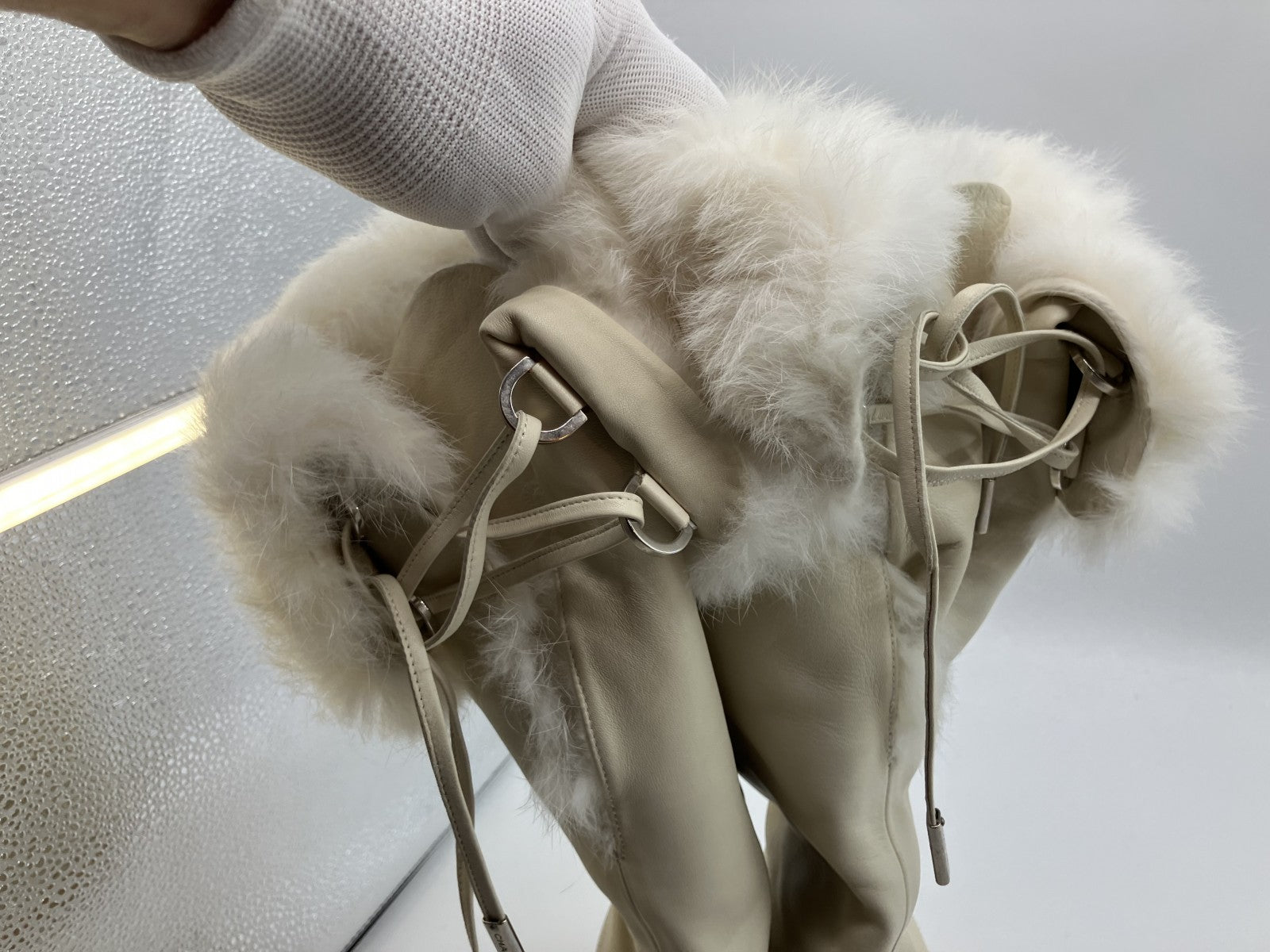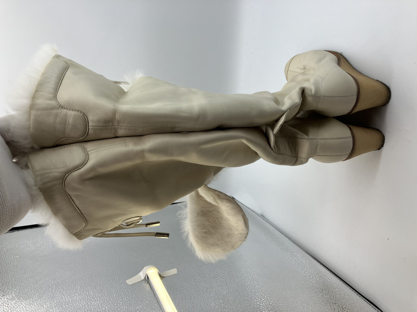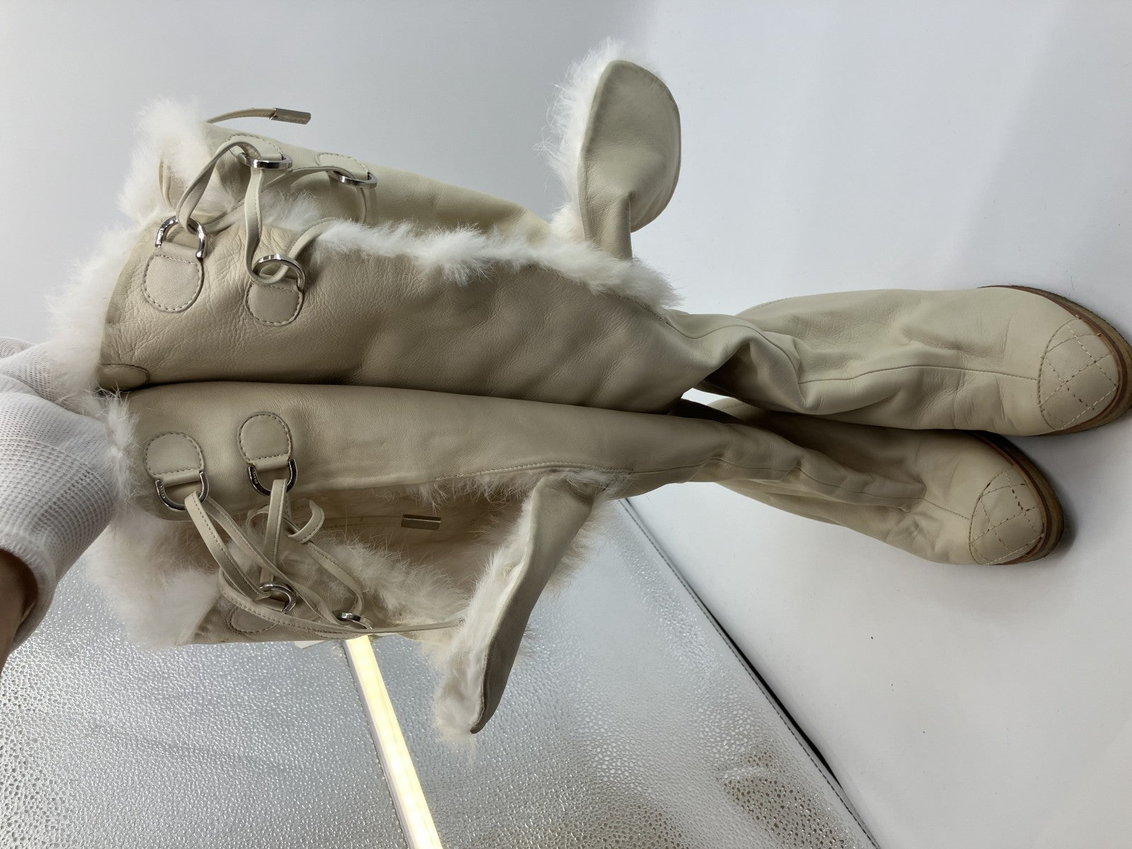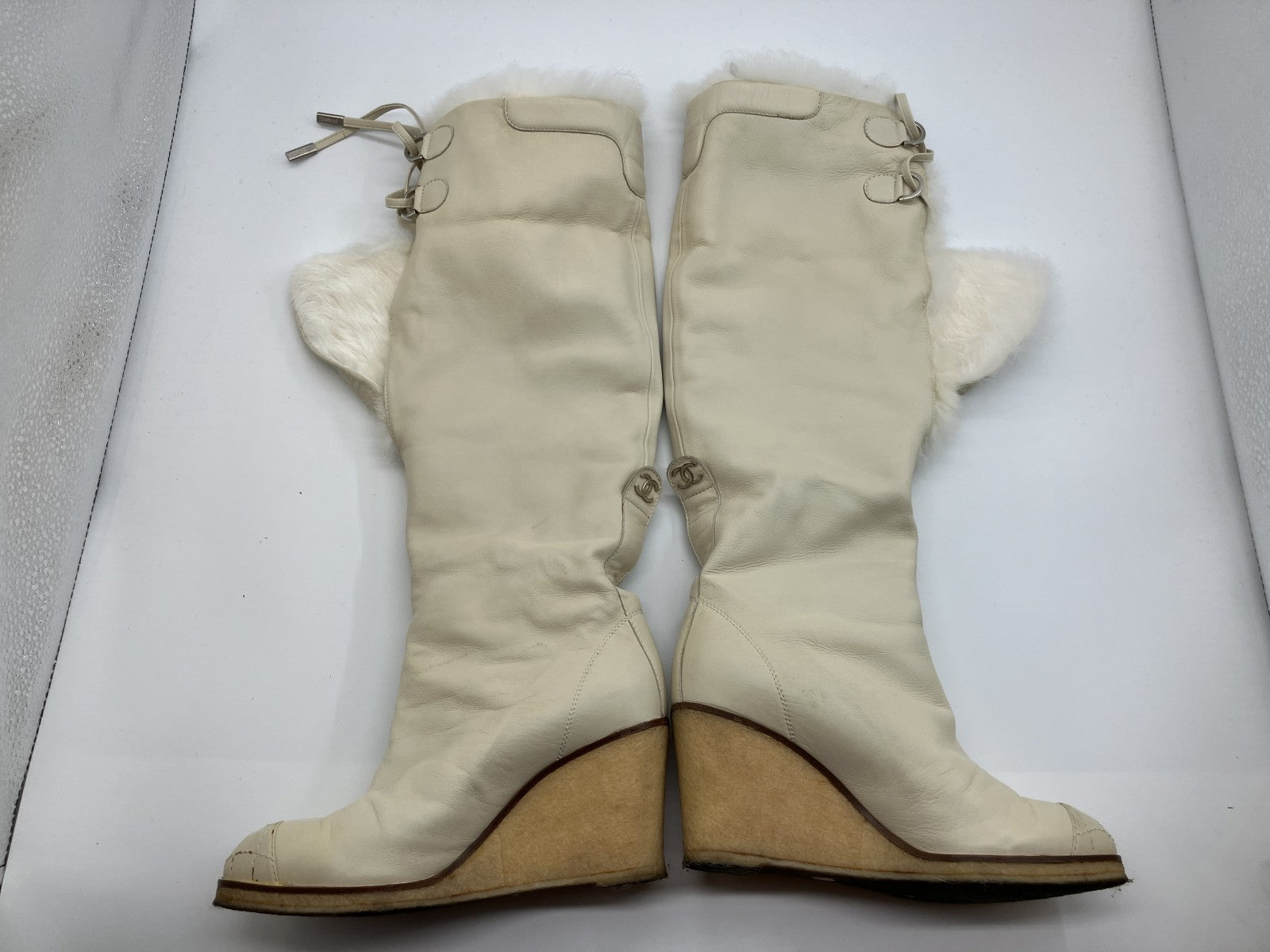 Chanel Coco Mark Fur and Leather Long Boots 37 Women's Ivory Matrasse