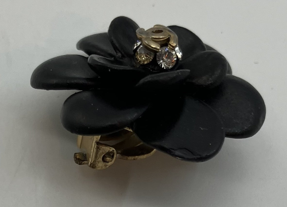 CHANEL 02A ต่างหู Coco Camellia (ชิ้นเดียว) สีดำ จัดส่งฟรี