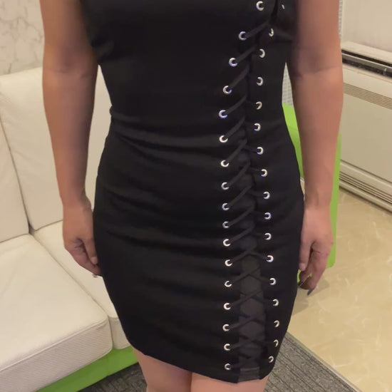 GUESS Sleeveless Dress, Black, Size XS, Tight Lace-Up