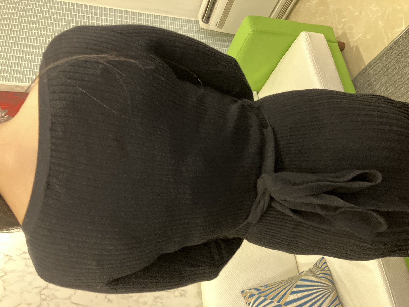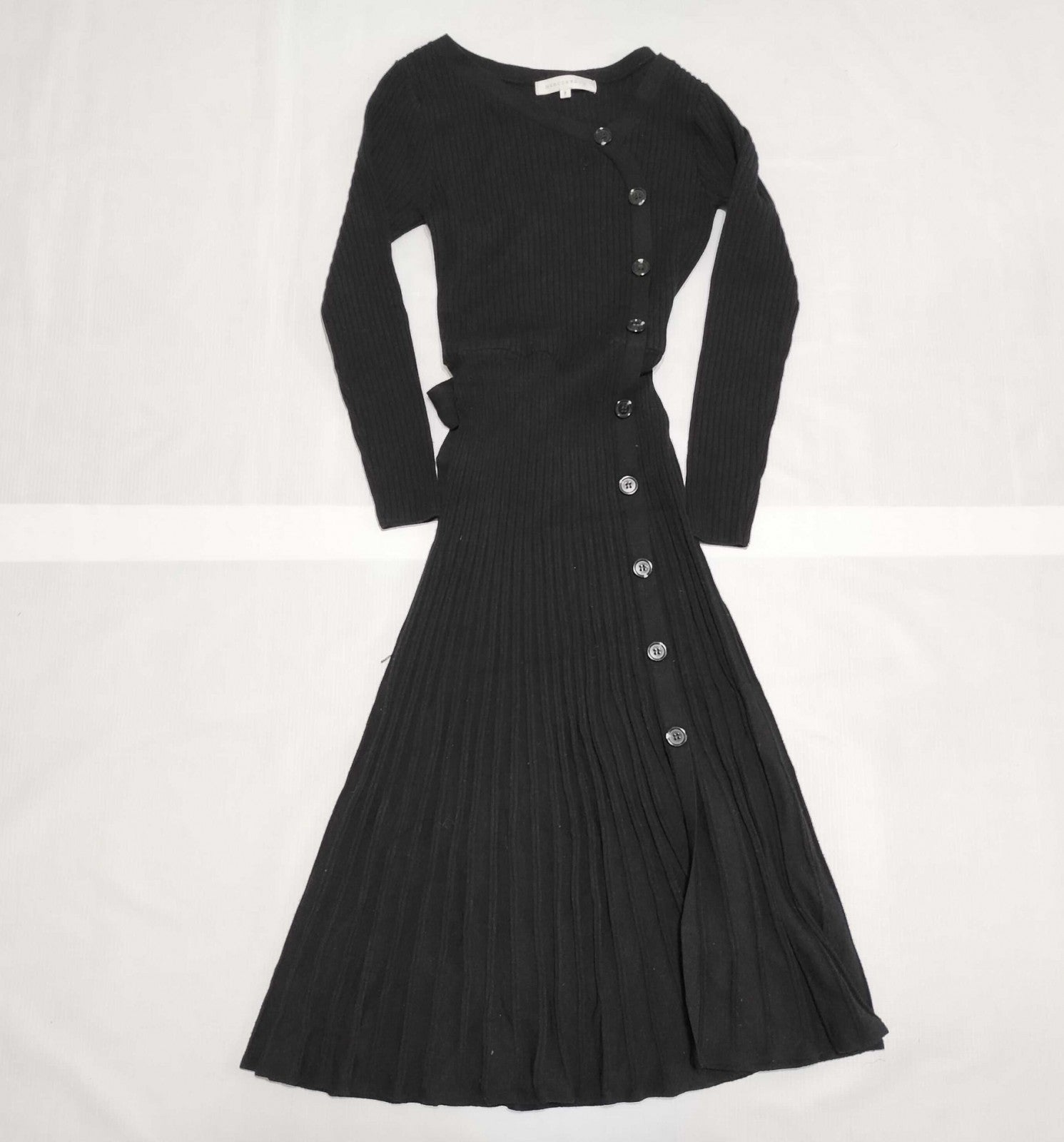 MERCURYDUO Ribbed Knit Dress Black Free Size Long Sleeve Women