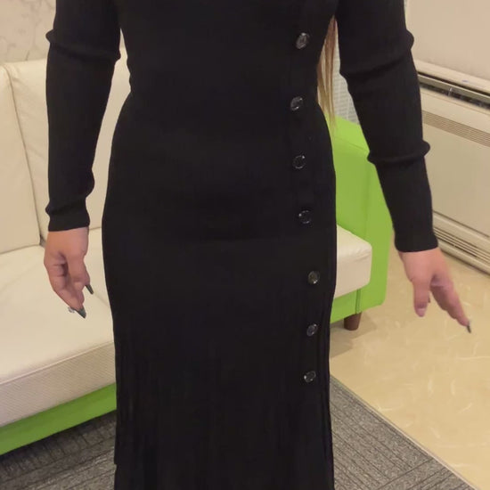 MERCURYDUO Mercury Duo Knit Dress, Black, Size F, One Size Fits All, Ribbed, Long