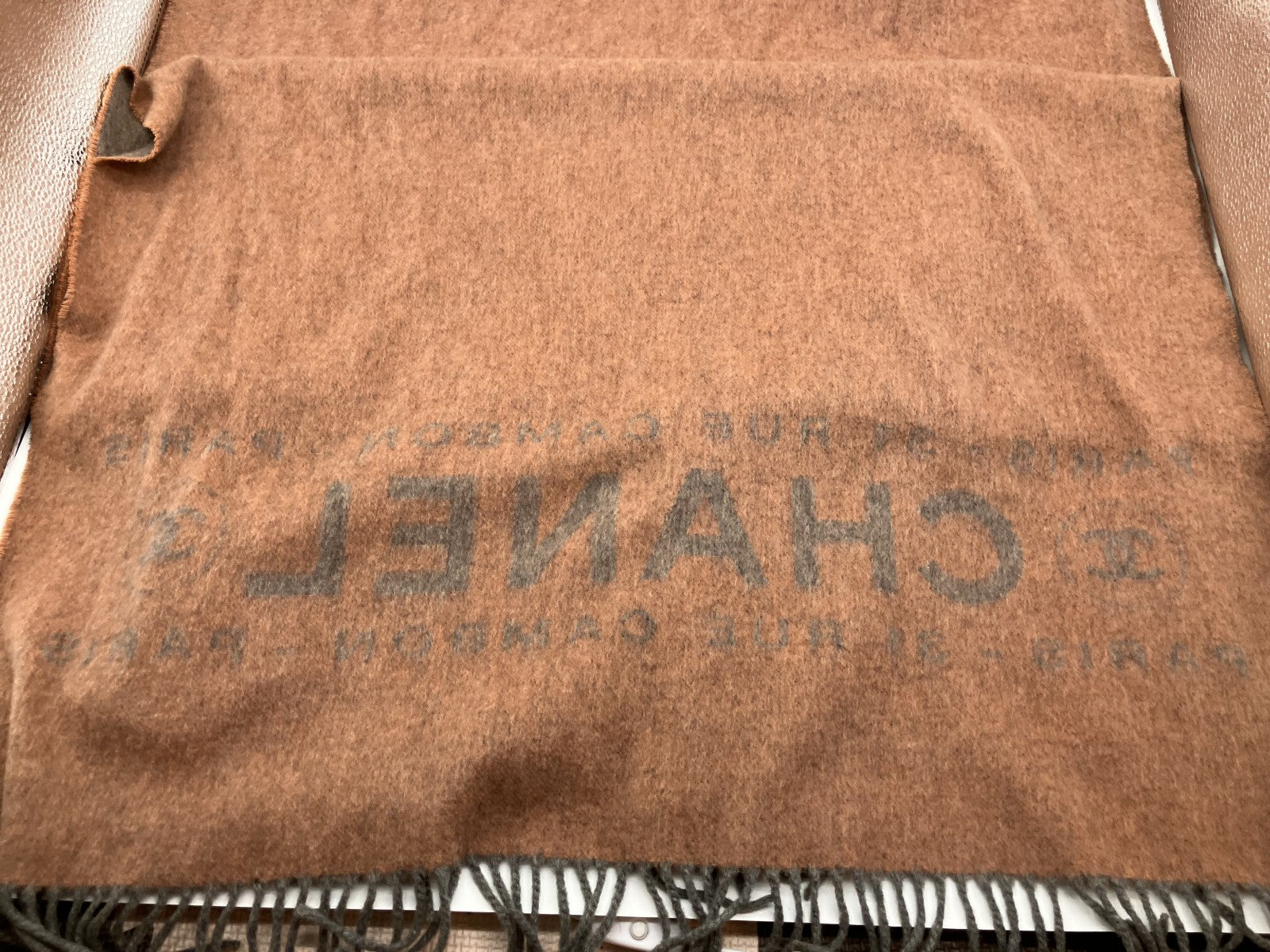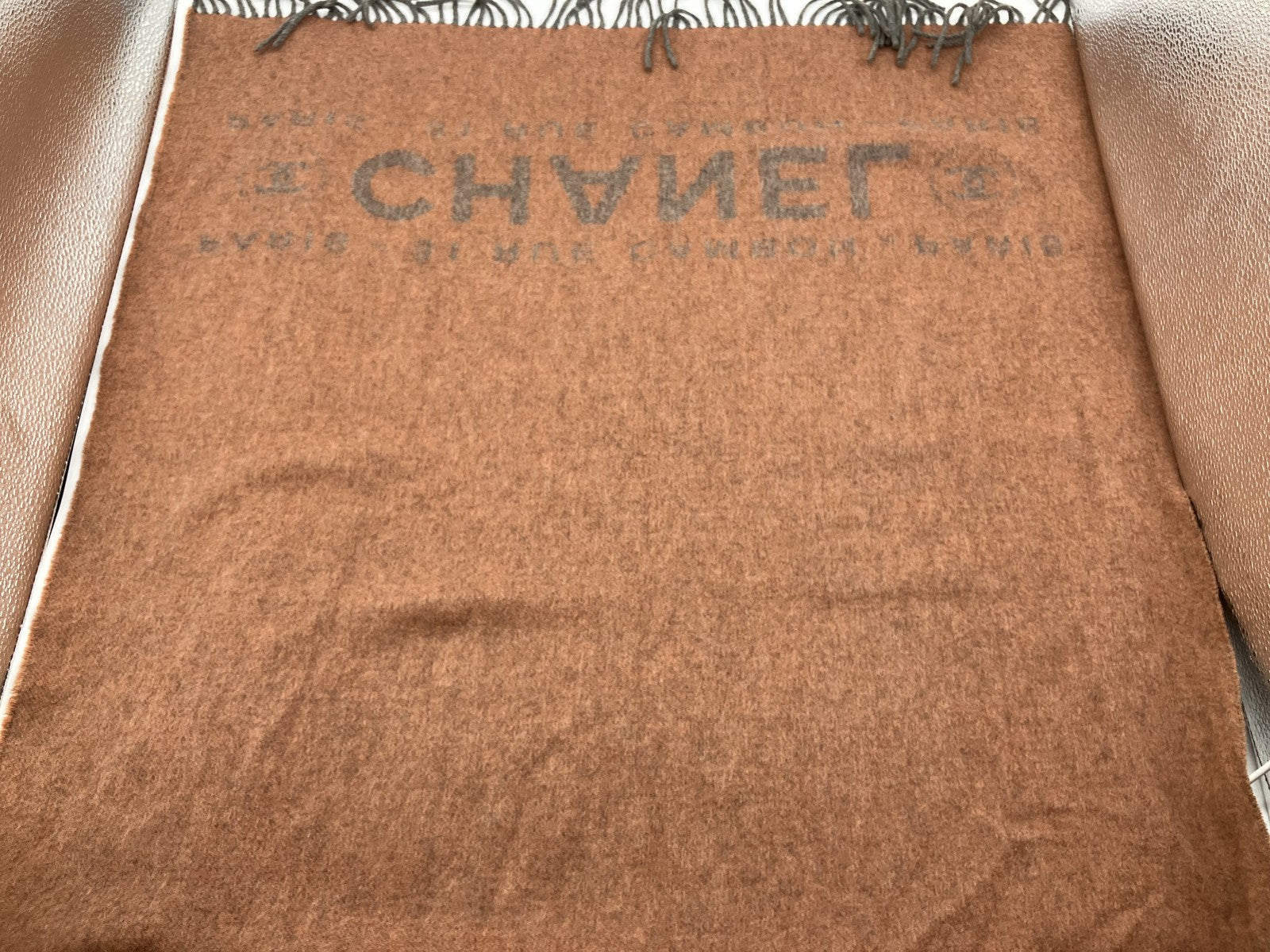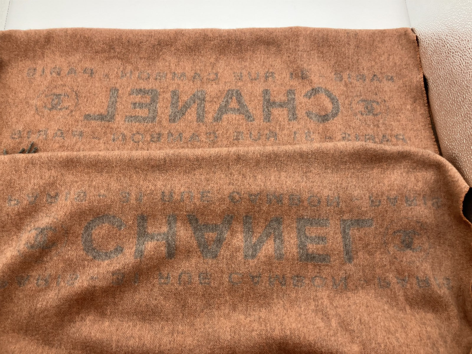 ผ้าพันคอลายโลโก้ Chanel สีเบจ 210 x 72 ซม. (82.68 x 28.35 นิ้ว) จัดส่งฟรี